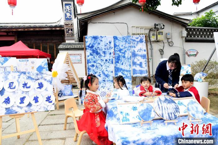 纪念严复诞辰170周年活动中的扎染展示。中新网