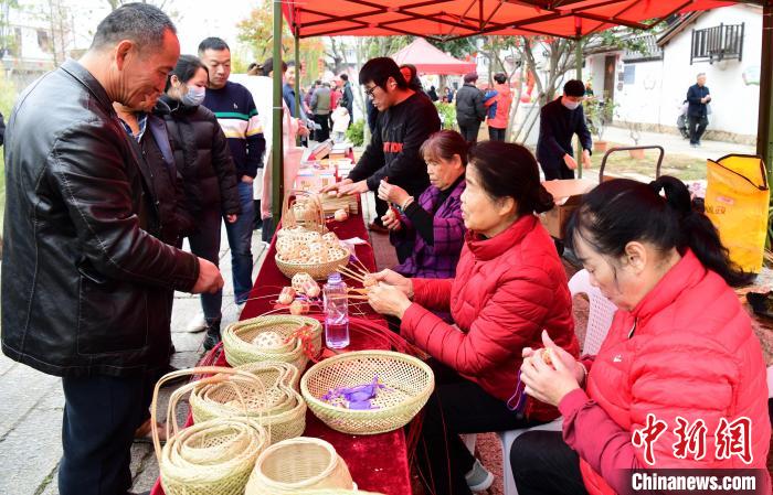 非遗竹编制作技艺展示。中新网