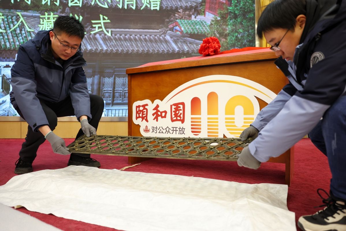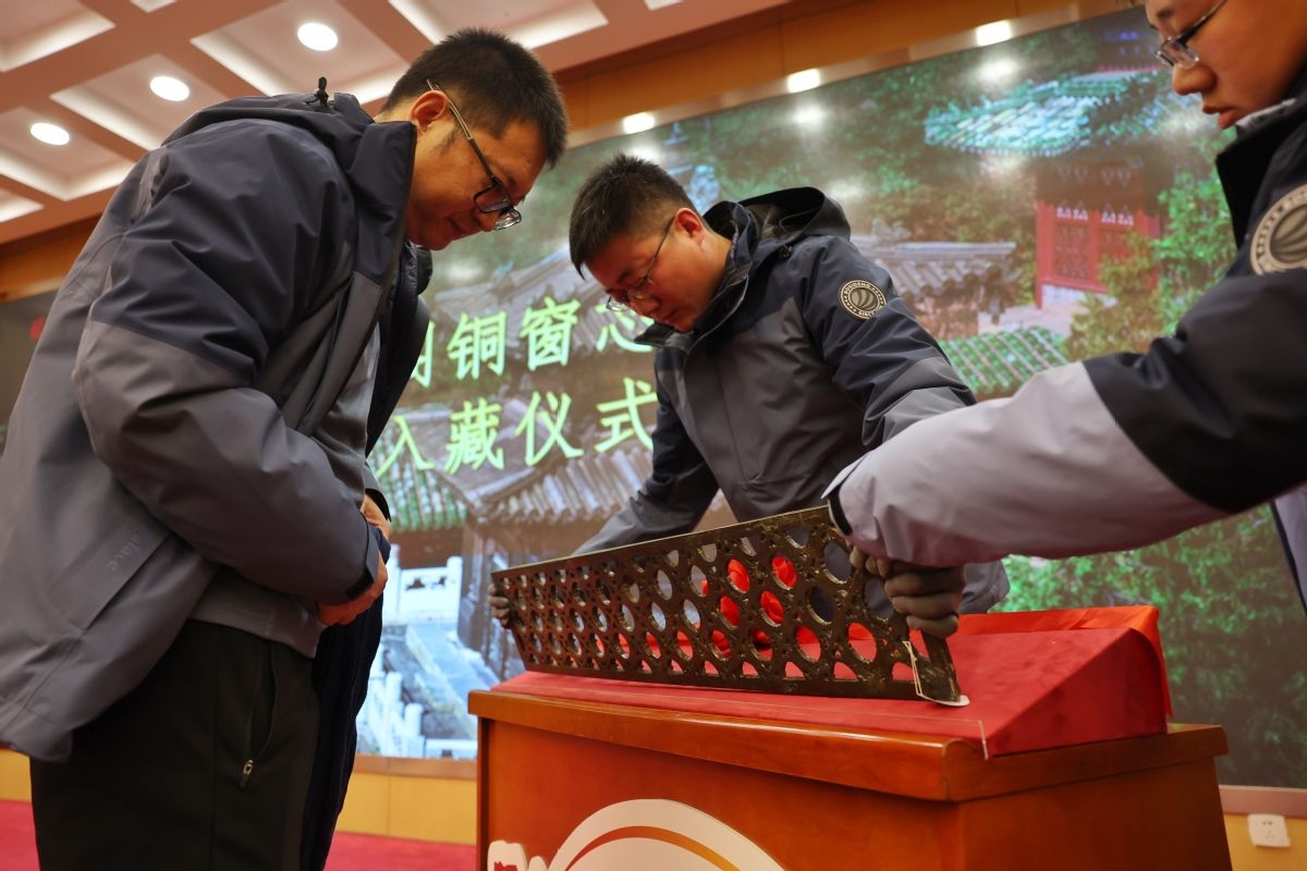 本次文物回归是继1993、1995年中国国家文物局两次促成宝云阁铜窗、铜窗芯入藏颐和园后的又一捐赠义举,对于恢复宝云阁文物建筑完整面貌、丰富颐和园馆藏文物体系具有重要意义。图为1月10日,颐和园宝云阁铜窗芯捐赠暨划拨入藏仪式现场。中国日报网