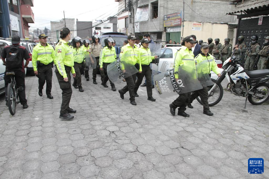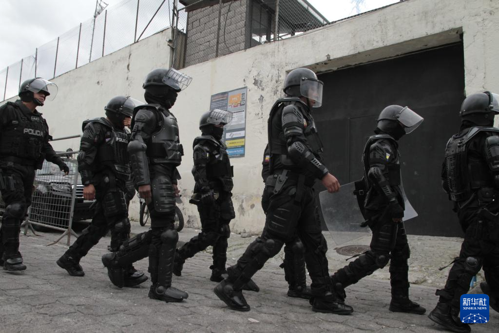 近段时间以来,厄瓜多尔安全形势严峻,全国各地发生多起暴力事件。据悉,瓜亚基尔一家医院9日当天也出现了武装人员。此外,至少有七名警察在三个不同的城市被绑架。图为1月9日,厄瓜多尔警察在首都基多巡逻。新华社