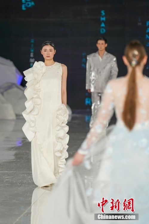 来自26个国家和地区的国际设计师为本届时装周设计的冰雪主题时装。中新网