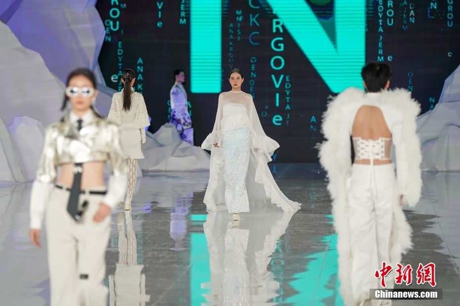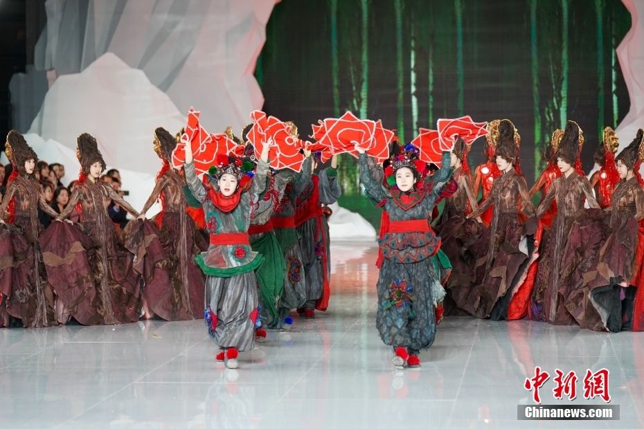 2024第十届哈尔滨国际时装周开幕式上的非遗服饰表演展示。中新网