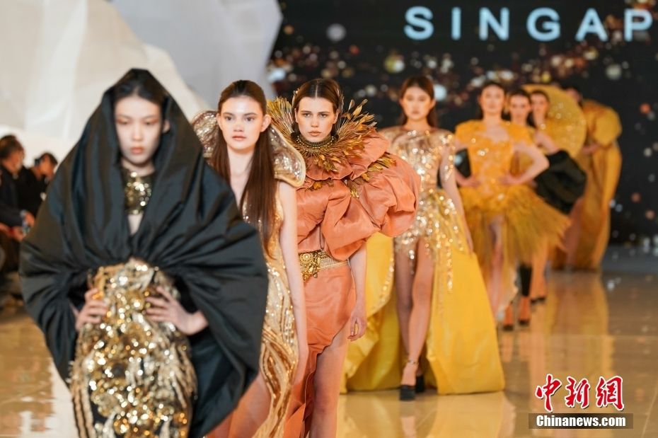 新加坡设计师Frederick Lee携其同名品牌进行的作品发布秀。中新网