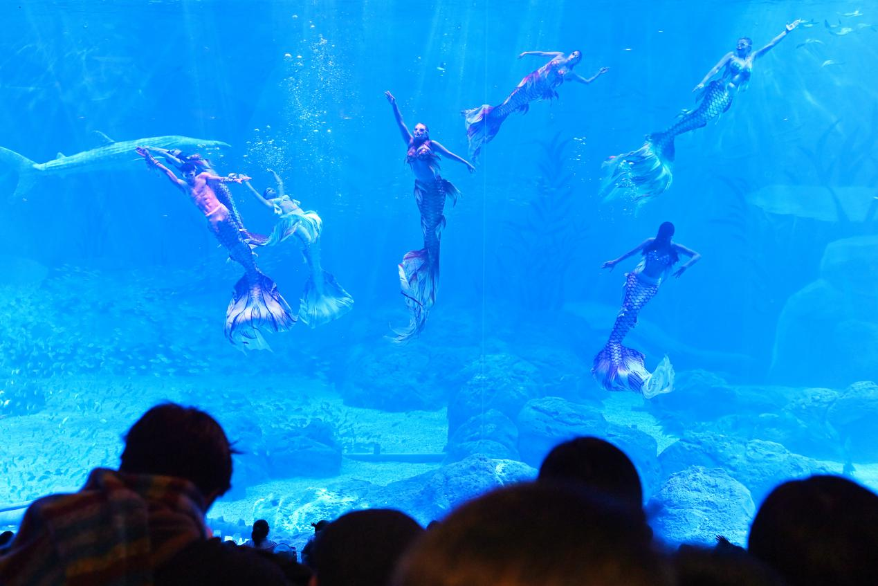 美人鱼表演吸引众多游客观赏。《潇湘晨报》