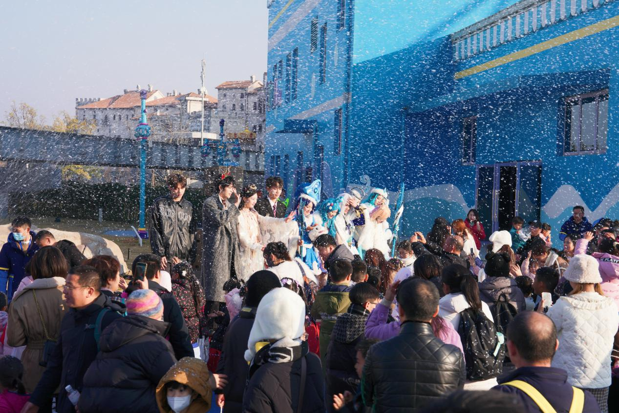 景区为游客造雪,营造冬日氛围。《潇湘晨报》