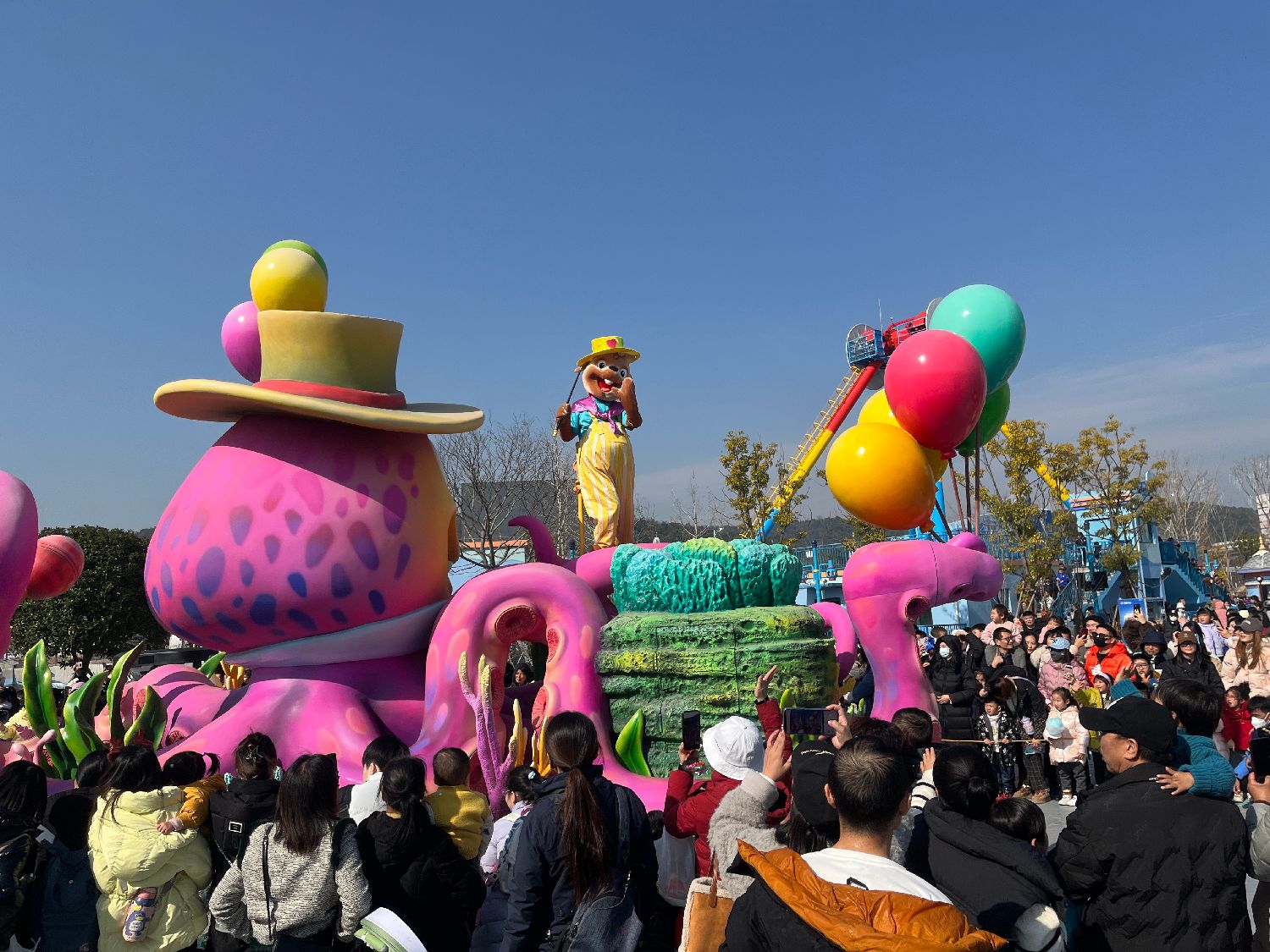 据悉,2023年12月26日,长沙湘江欢乐海洋公园开园仪式在湖南长沙大王山旅游度假区举办。湘江欢乐海洋公园填补了湖南省内没有大型海洋乐园体验项目的空白。图为湘江欢乐海洋公园花车巡游人气爆棚。《潇湘晨报》