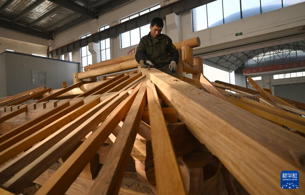 安徽省黄山市歙县是中国历史文化名城,拥有丰富的历史文化遗产和独特的地域文化特色,是徽文化的重要发源地。如今,有越来越多人投入对徽文化的传承创新,用更有活力的方式守护千年文化的延续。 近年来,安徽省黄山市积极推动徽派古建创新发展,一批古建企业逐步发展壮大,古建人才队伍不断聚集,成为拉动消费增长的新动力。目前,黄山市仿古建筑营造、古建修缮保护利用、古建构件配件生产等各类企业达到254家,徽州古建工匠1.4万余人。图为1月11日,在黄山徽匠园林古建有限公司,工作人员在制作徽派仿古建筑配件。新华社