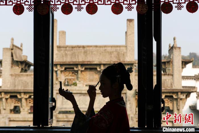 1月10日,在歙县徽州古城,演员在演出前化妆。中新网