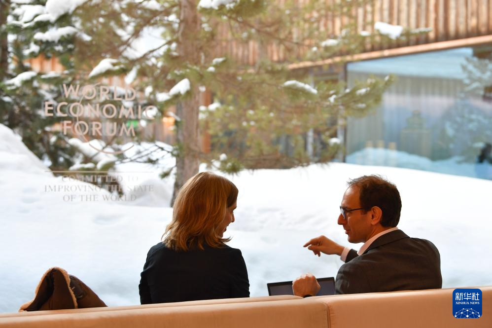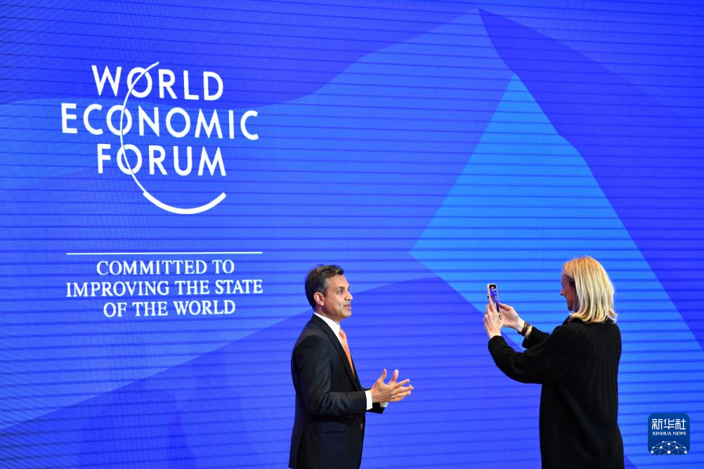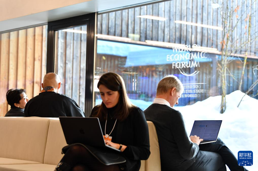1月15日,在瑞士达沃斯,与会者参加世界经济论坛2024年年会。新华社