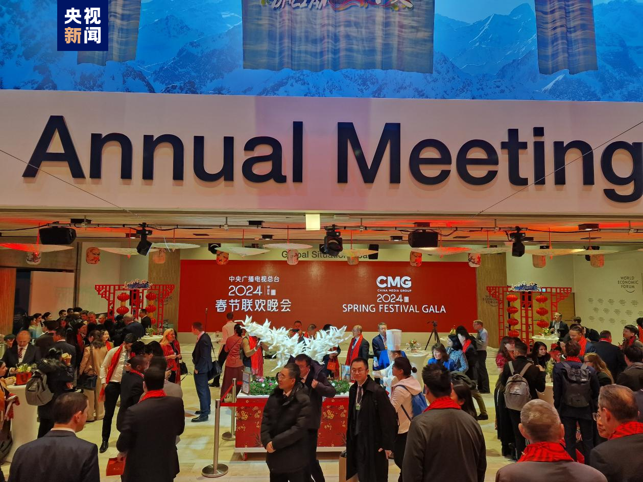 1月16日,中国中央广播电视总台制作的龙年春晚动态海报亮相世界经济论坛2024年年会,向与会中外人士推介全球华人一年一度的文化盛宴,展示中国节庆文化以及传统习俗。大陆央视新闻客户端