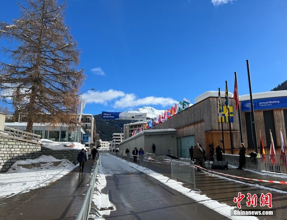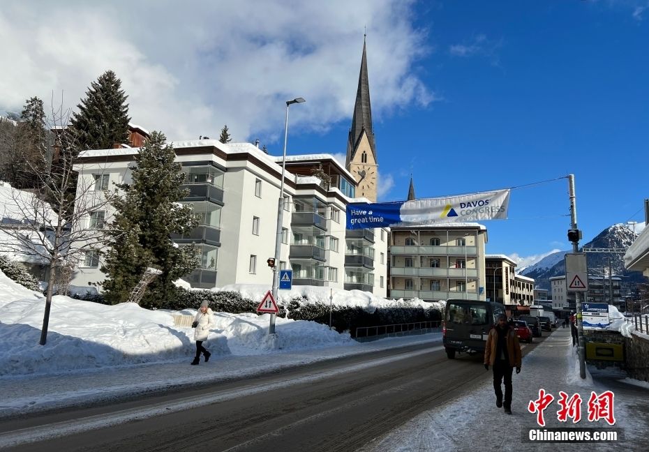 达沃斯街道上悬挂的会议相关景观装饰。中新网