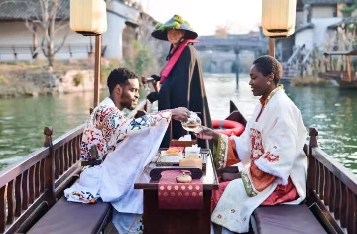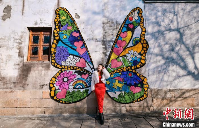 外籍博主打卡濮院时尚古镇。中新网/濮院时尚古镇供图