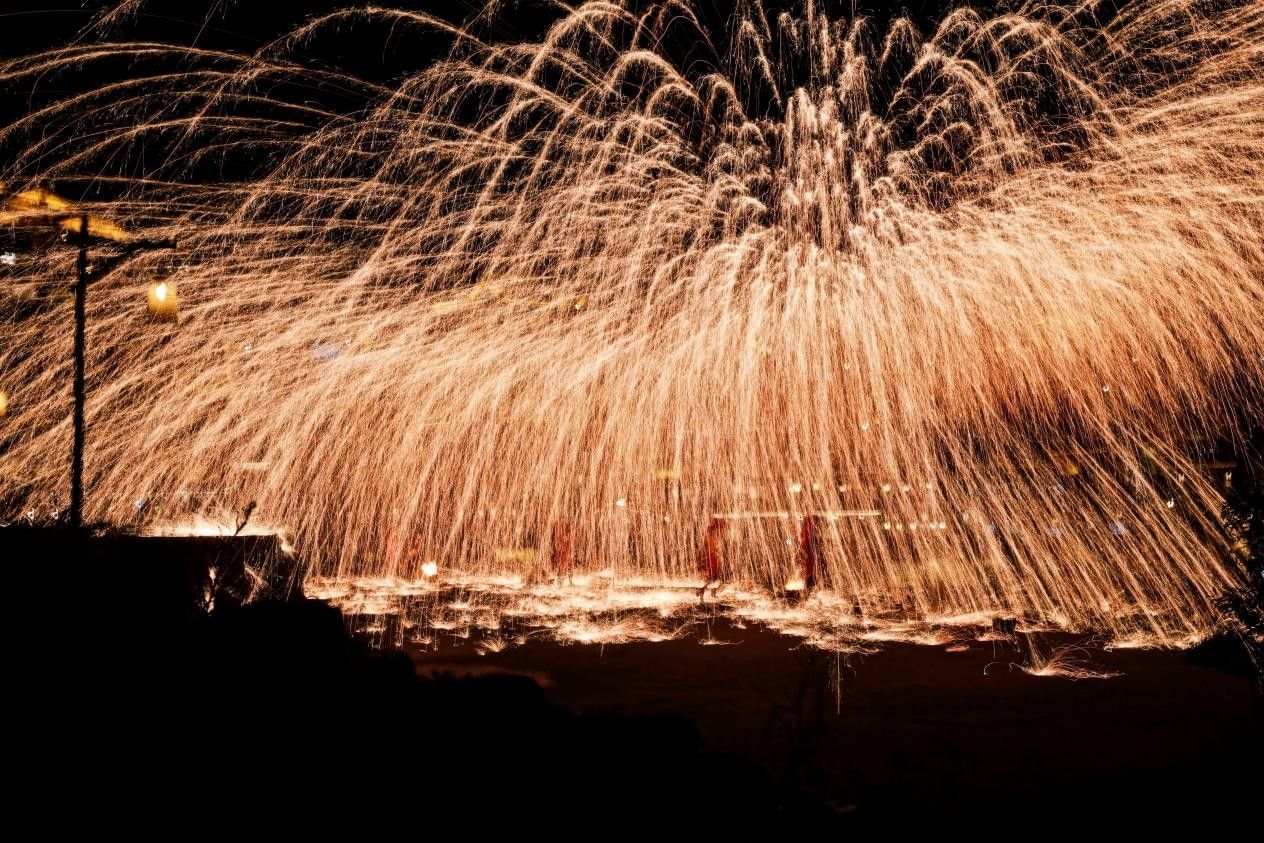 濮院时尚古镇进行打铁花表演。青岛大众网