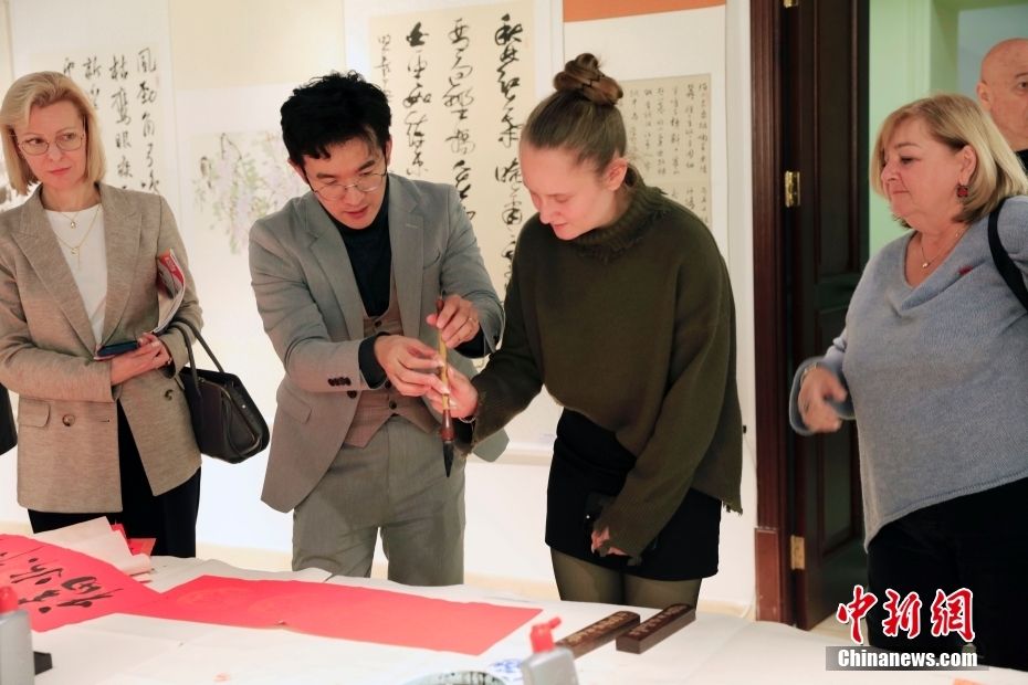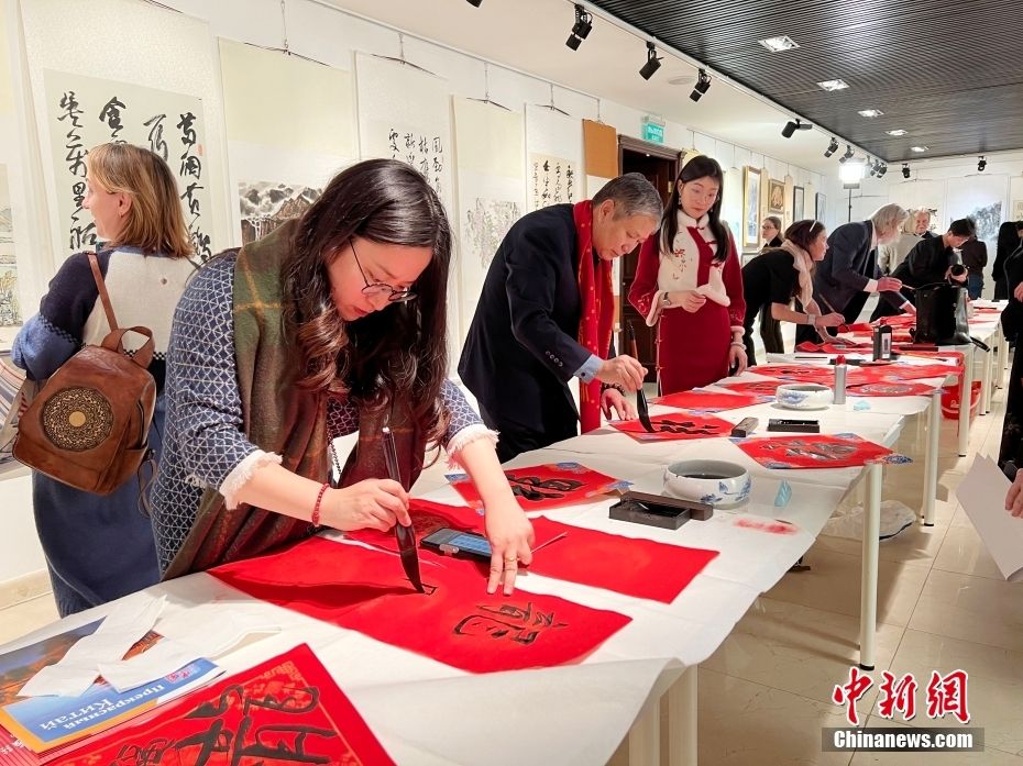 当地时间1月16日,“中国俄罗斯书法美术作品展”在莫斯科中国文化中心举办。活动展出中俄书法美术作品120余幅。活动期间,中俄书画家现场创作书画作品,书写迎春“福”字、对联等,为观众送上中国新年祝福。