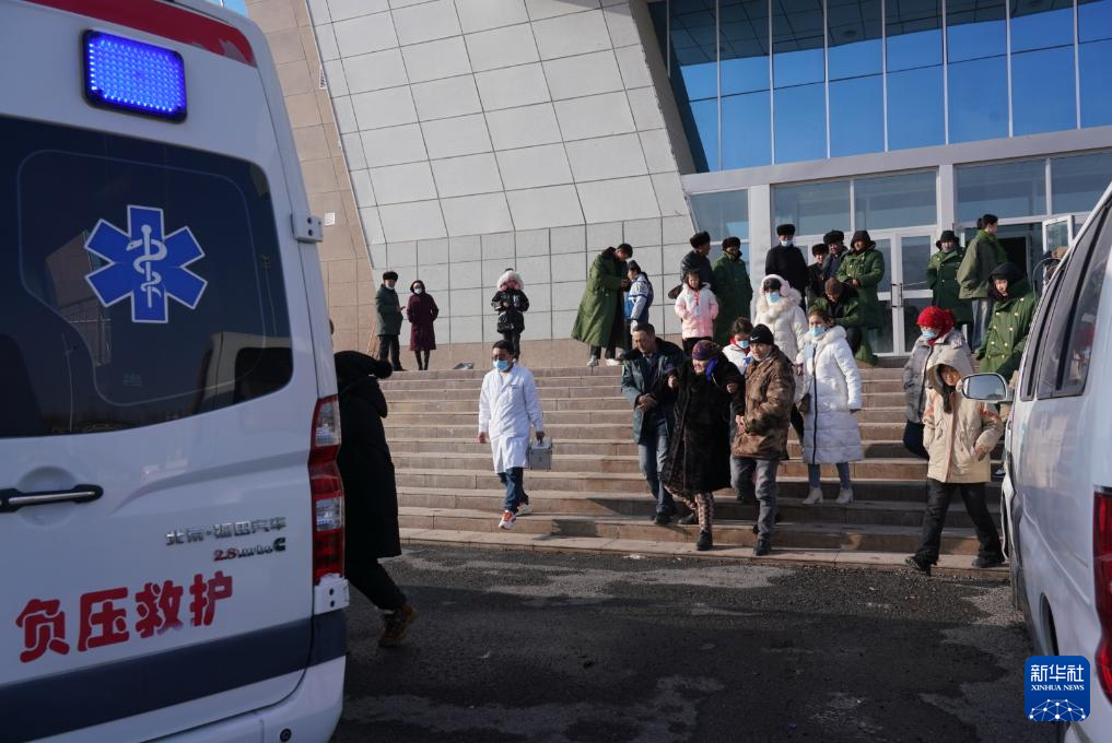 1月23日,在新疆阿合奇县,救护车将应急避难处一名身体不适的居民转移到医院进行检查救治。新华社