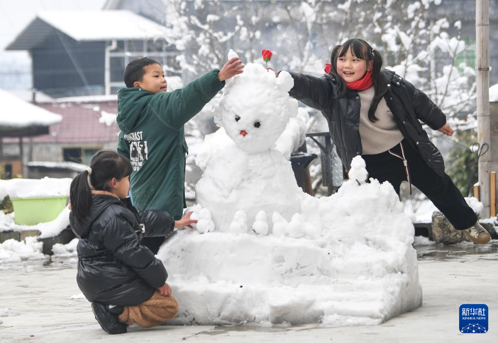 近日,受寒潮天气影响,中国多地迎来降温降雪。在“雪以稀为贵”的南方地区同样等来了雪的降临,冬日的氛围感因此被瞬间拉满,也为南方民众实现了难得的“冰雪自由”。图为1月23日,小朋友在重庆市秀山县梅江镇民族村玩雪。新华社