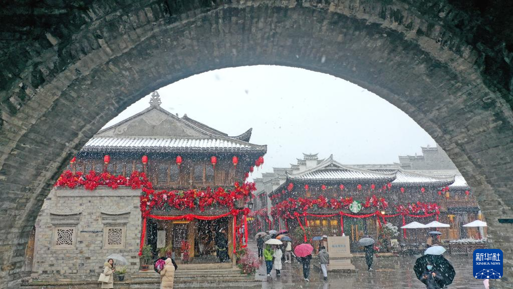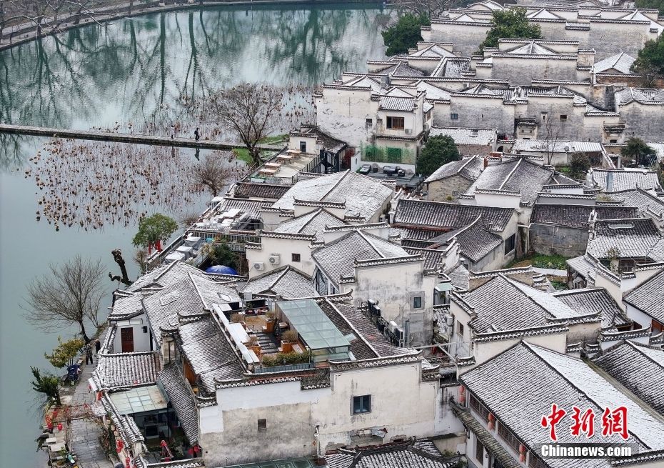 安徽省黄山市黟县宏村古村落降雪后徽派古民居银装素裹,展现别样江南水乡风情。中新网