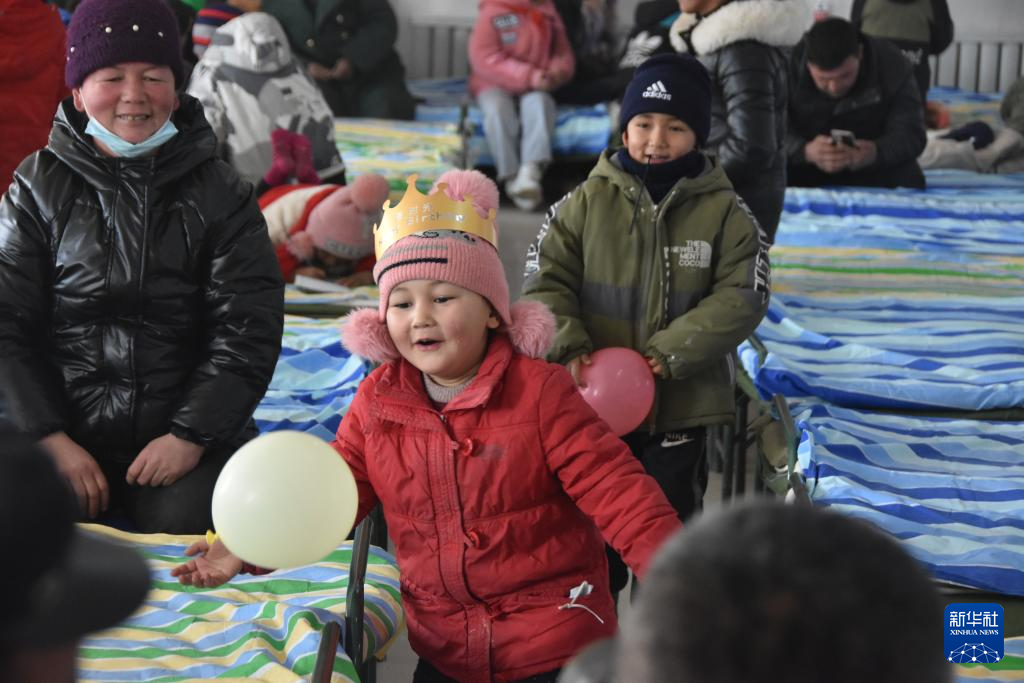 1月25日,小朋友在尤喀克亚曼苏村的一处安置点里的生日会上玩耍。新华社
