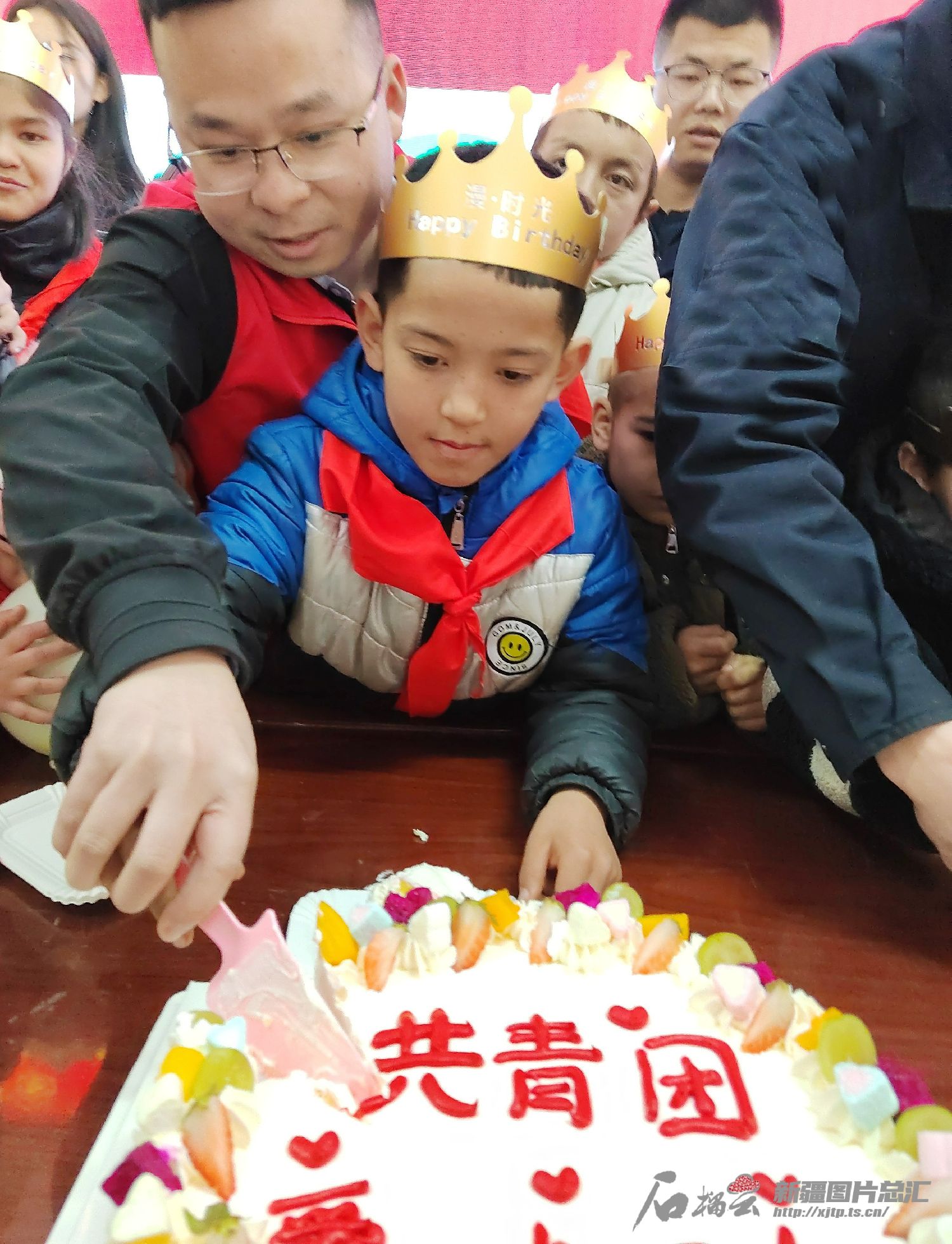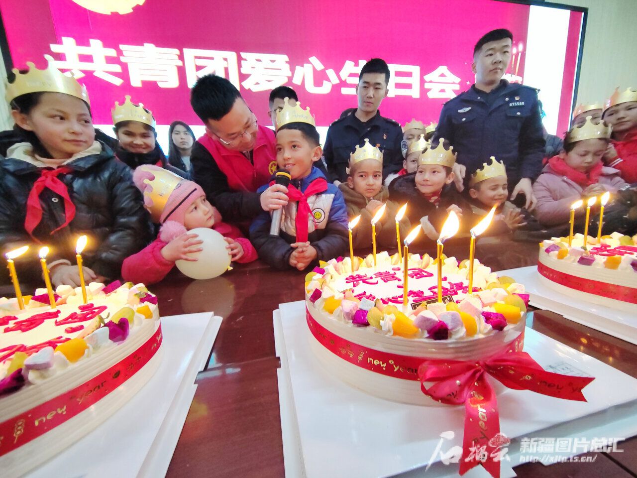 1月25日,过生日的小朋友们在志愿者的协助下切蛋糕。《新疆日报》