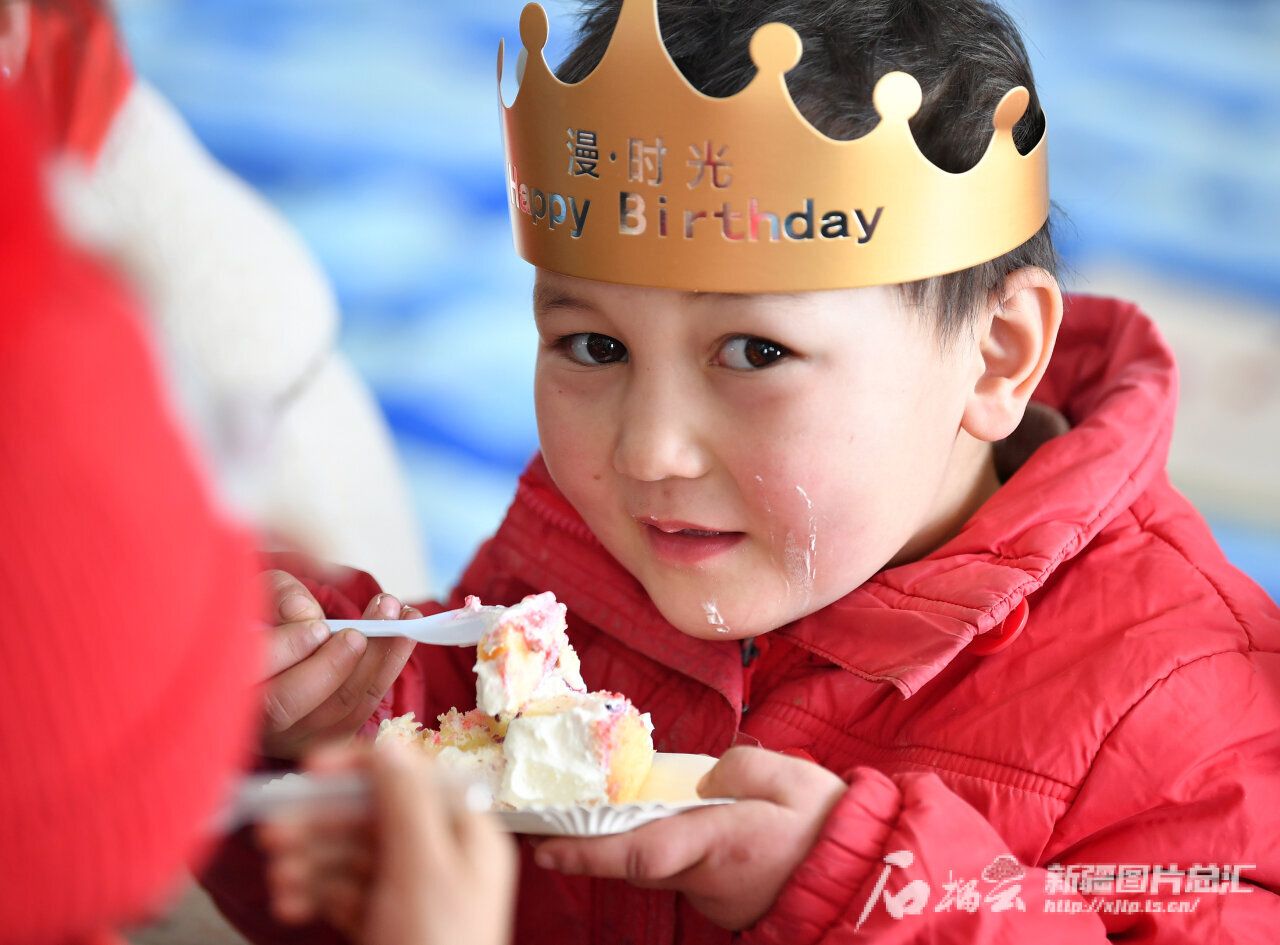 1月25日,小朋友在品尝蛋糕。《新疆日报》