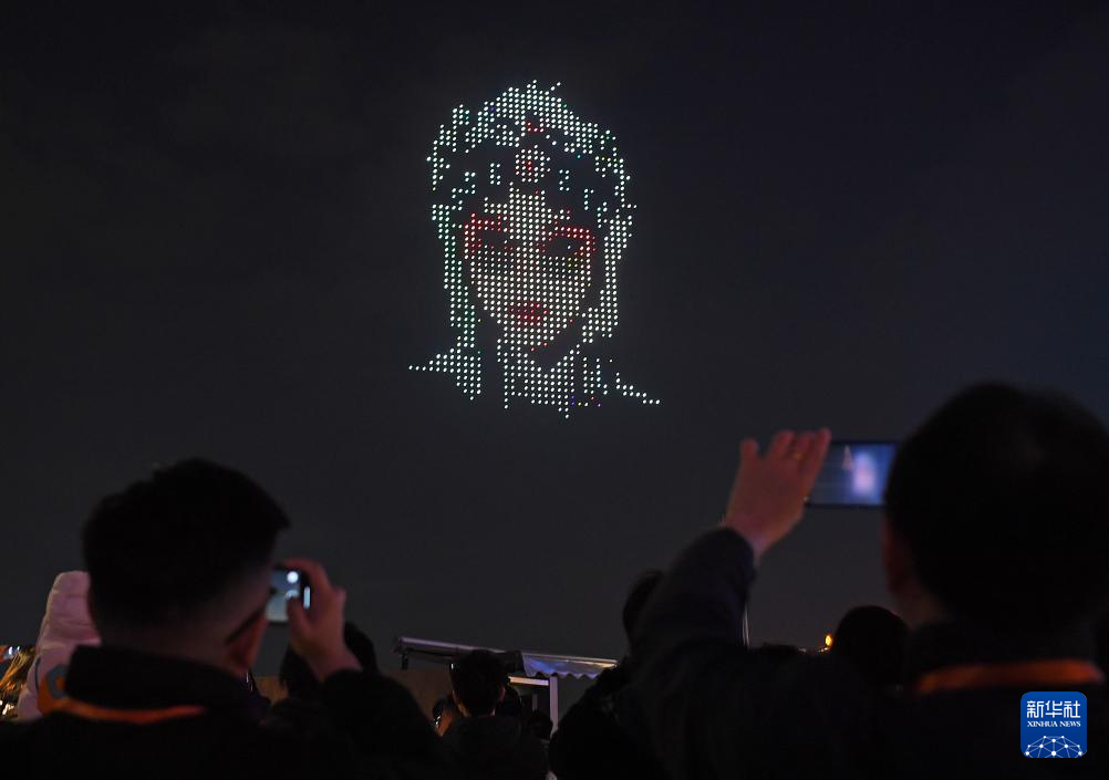无人机灯光秀展示效果。大陆央视新闻客户端