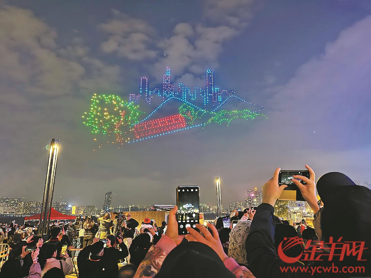 1月28日,无人机在维港夜空组成粤剧花旦图案。新华社