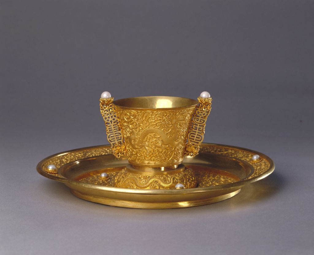 金嵌珠“万寿无疆”杯盘。北京故宫博物院官网