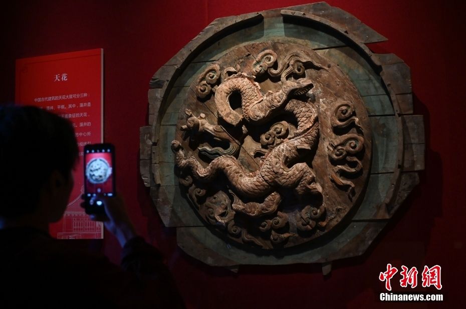 元代时期的三清殿藻井团龙。中新网