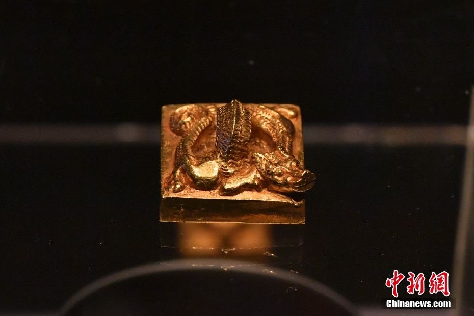 “文帝行玺”龙钮金印。“文帝行玺”龙钮金印是中国目前考古发掘所见最大的一枚西汉金印,也是唯一的汉代龙钮帝玺。中新网