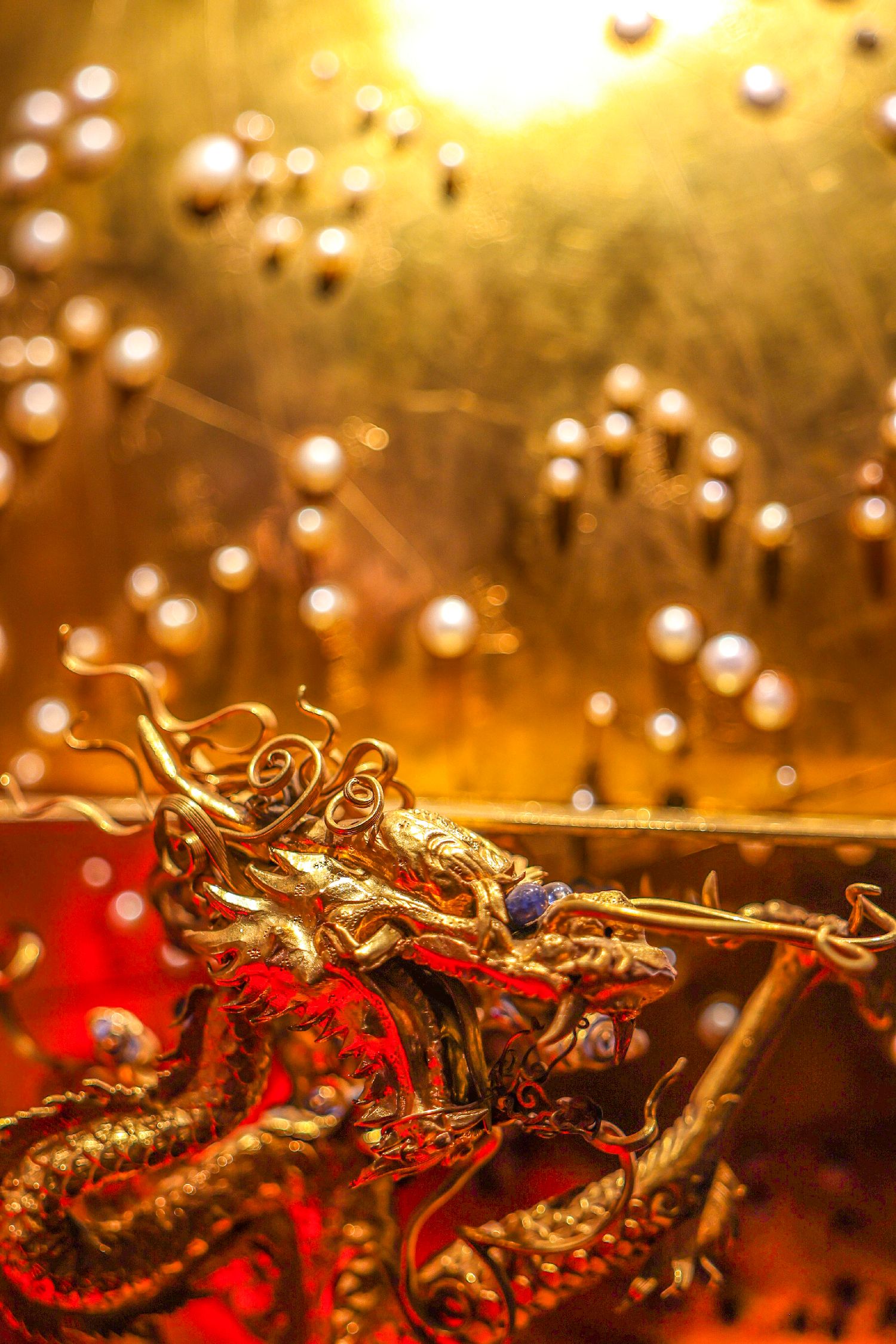 金嵌珍珠天球仪上的龙,藏于故宫博物院。视觉中国