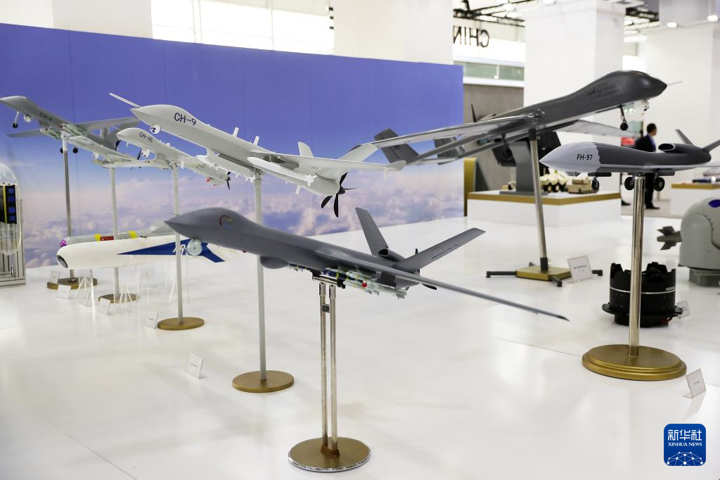 2月5日在沙特阿拉伯利雅得拍摄的防务展上的无人机模型。新华社