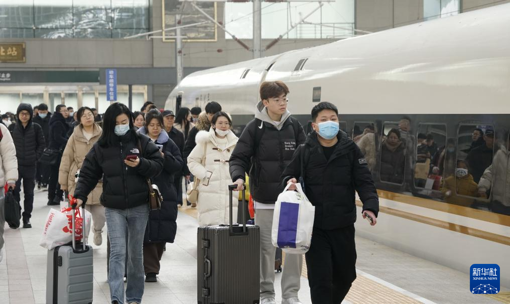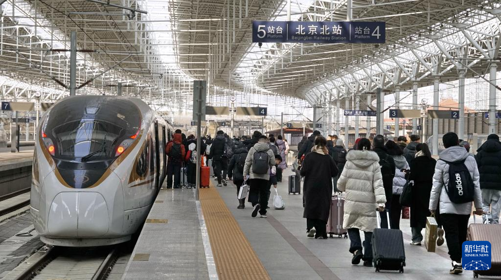 从本周开始,中国铁路春运进入节前高峰,大批旅客乘火车返乡和出行。2月5日,铁路春运第11天,客流持续高位运行,中国铁路发送旅客1219.8万人次。图为2月5日,旅客从北京北站乘车出行。新华社