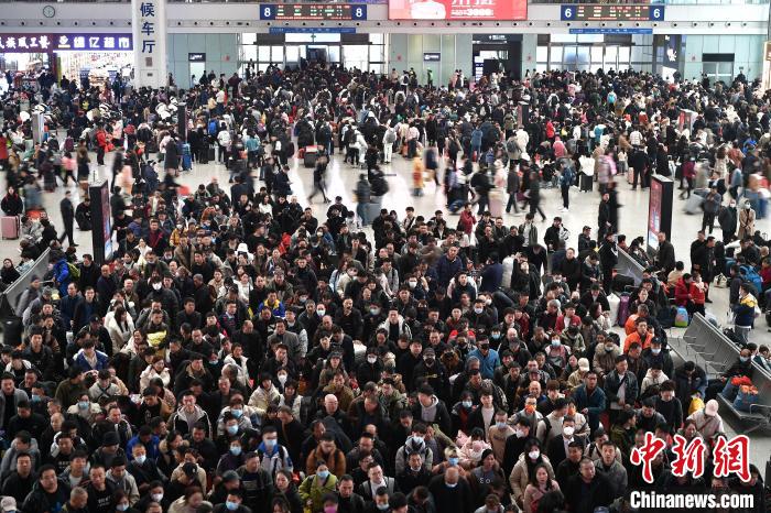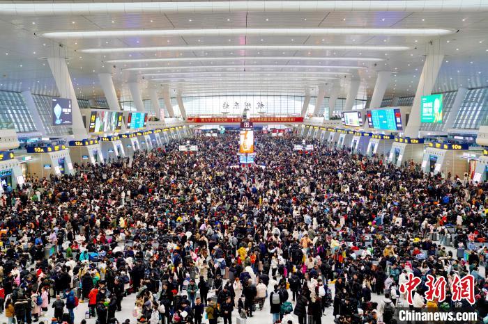 截至2月4日,今年春运期间铁路杭州站已累计发送旅客315.2万人次,日均发送旅客31.5万人次,同比2023年、2019年分别增长62.8%和24.6%,客流增幅超过预期。图为杭州东站迎来客流高峰。中新网