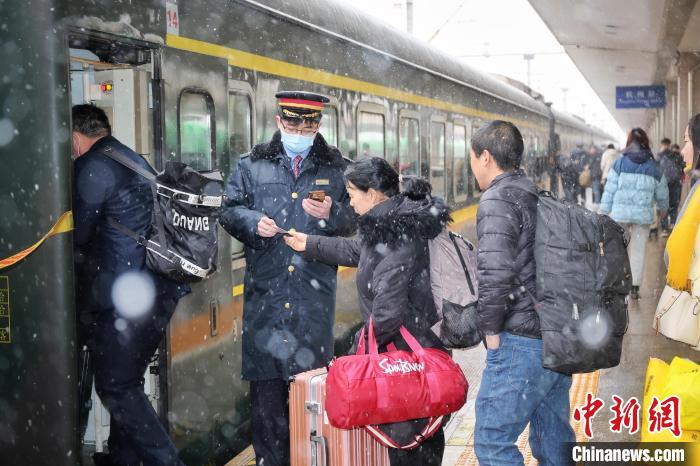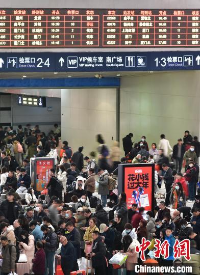 2月1日以来,铁路杭州站单日发送旅客量连续4天突破30万人次大关,呈现攀升走高的趋势。图为旅客有序排队上车。中新网