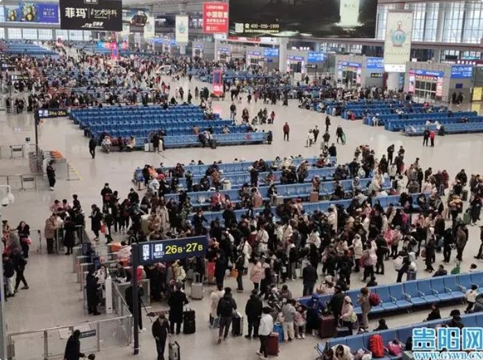 贵阳北站候车大厅,众多旅客在候车 。贵阳网