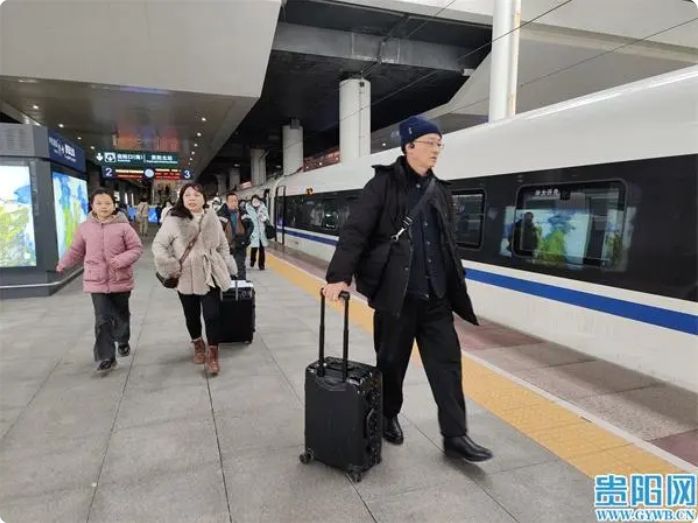 贵阳北站站台,旅客正走向各自车厢。贵阳网