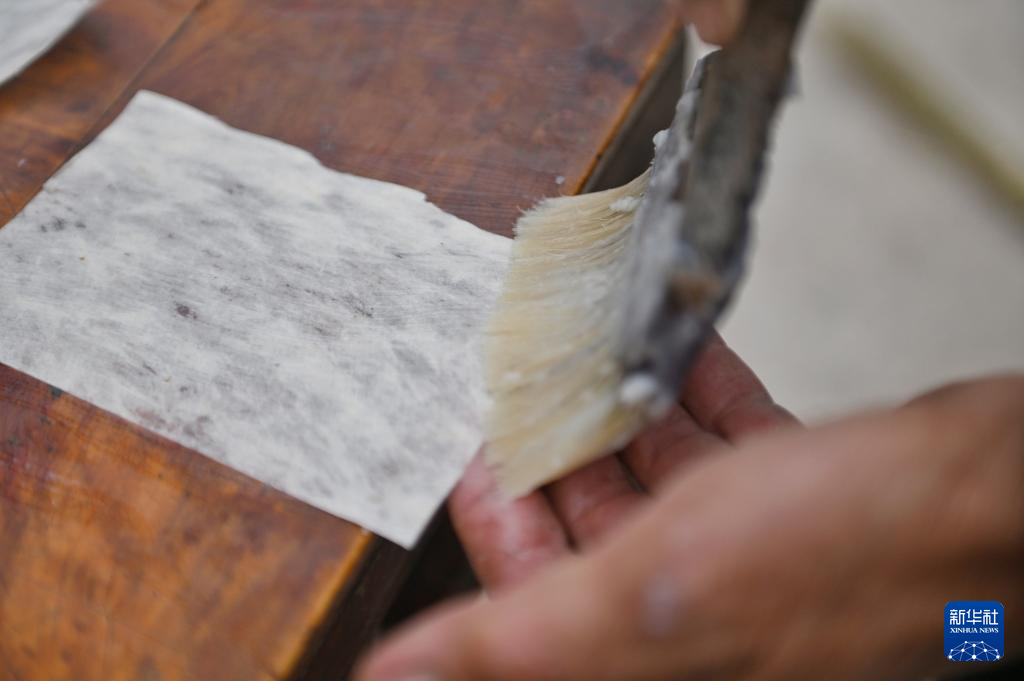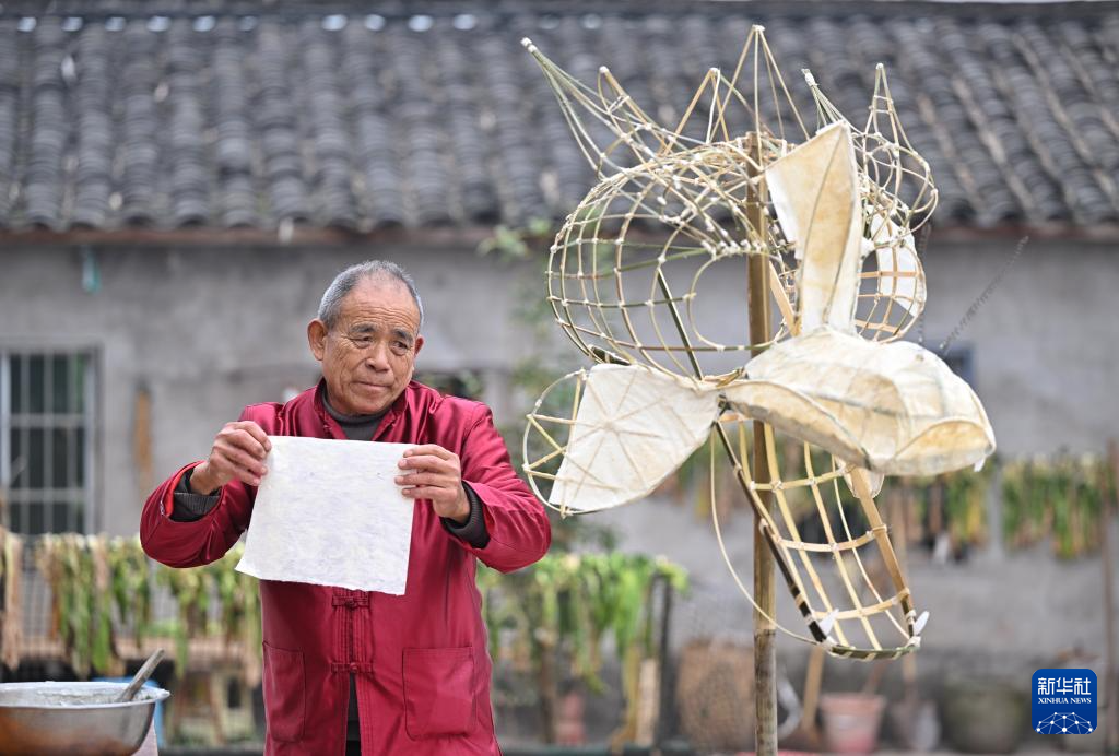 今年75岁的罗德书家住四川省泸州市泸县方洞镇,是中国国家级非物质文化遗产项目泸州雨坛彩龙的代表性传承人。罗德书4岁起便跟随父亲学习民间龙舞技艺,在继承祖辈民间龙舞的基础上,他吸收了杂技和外地龙舞技艺的精华,将泸州雨坛彩龙进行了创新和发展,至今已授徒500余人。图为2月1日,罗德书将纸张糊在彩龙框架上。新华社