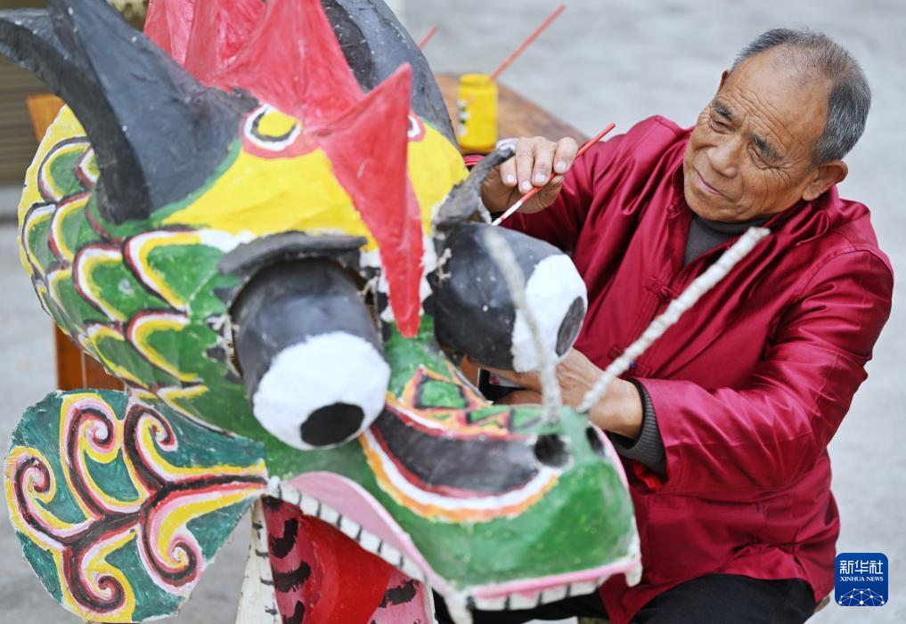 据了解,清光绪年间,泸县艺人将原有的“草把龙”改成彩龙,到1919年,出现了第一条雨坛彩龙。自此,每逢年节,当地百姓都要舞彩龙。2006年,泸州雨坛彩龙被列入第一批中国国家级非物质文化遗产名录。图为2月1日,罗德书在为彩龙上色。新华社