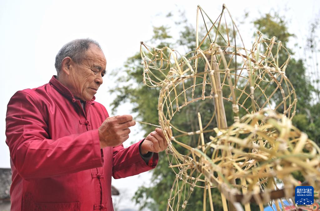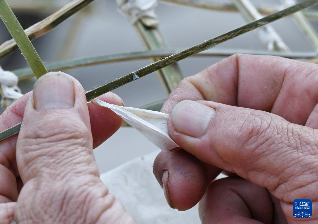 2月1日,罗德书在编制彩龙框架。新华社