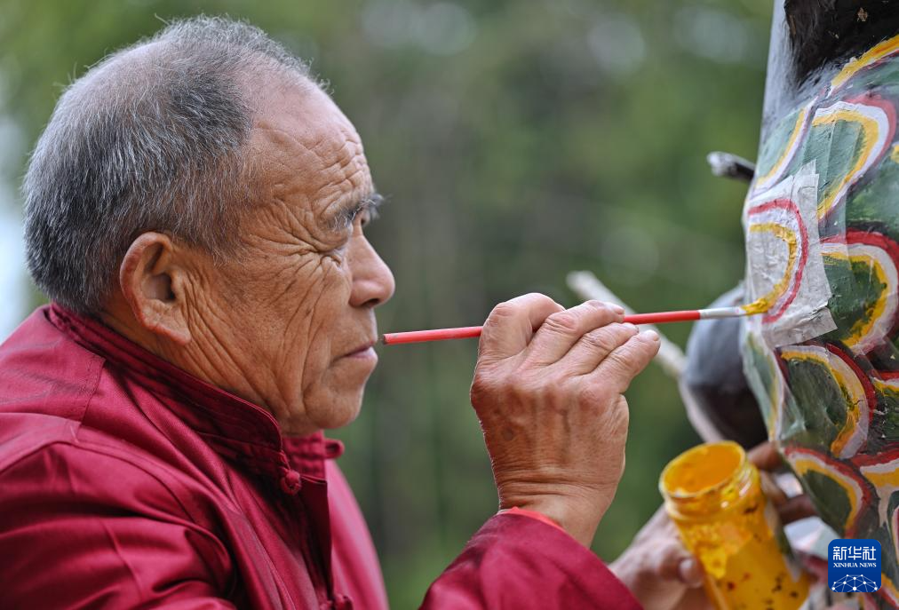 2月1日,罗德书在修补彩龙。新华社