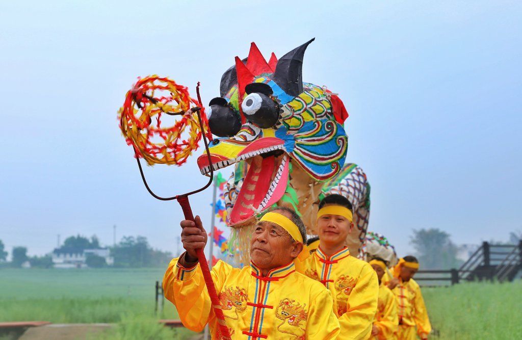 在泸县喻寺镇谭坝村的五彩步道上,伴着中气十足的叫喊声,罗德书两眼一定,双手一挥,手中的雨坛彩龙“龙头”如同活了一般,不断翻滚跃起。在他身后,7个舞龙者灵活控制着“龙身”。川观新闻网