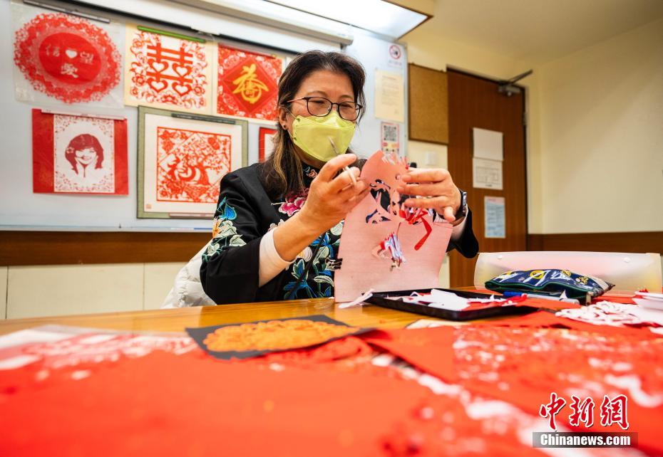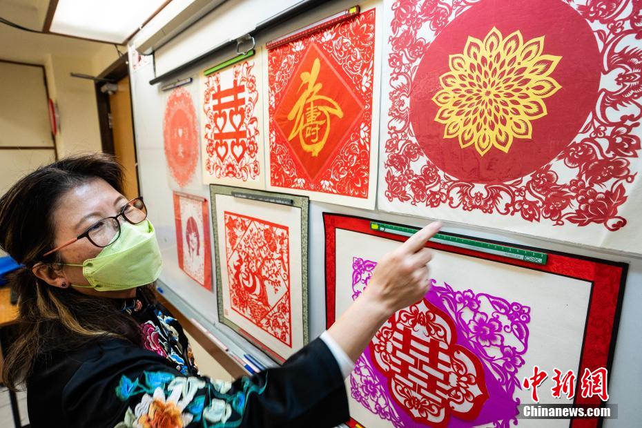 随着课程的延续、学生的增加,孙虹希望不光能有课堂能让学生学习,还应该有一个展示平台,把大家的优秀作品展示给更多人,因此,“香港中国剪纸文化艺术学会”于2018年应运而生,有了学会便可以有资格申请展览场地,今年1月中旬,学会就在香港文化中心举办了一次题为“寄手成春2024”的剪纸艺术展览,展示的“中国传统二十四节气”、“香港地标”等精美作品让观众久久驻足。展览期间,学会还在现场开办剪纸体验,让观展之后产生兴趣的观众可以当场学习剪出简单的作品,增加他们对中国剪纸艺术的印象。现如今,孙虹和学会不仅继续开设剪纸课堂、不定期举办展览,她本人开通了名为“剪出彩虹”的社交媒体账号,还和香港教育大学合作,走进香港中小学,向青少年们介绍剪纸,让剪纸艺术在香港蓬勃生长。图为“香港中国剪纸文化艺术学会”2024年1月中旬在香港文化中心举行的剪纸作品展。