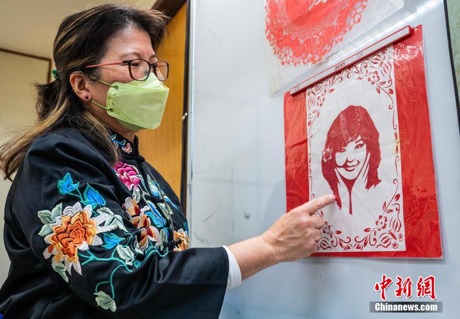“因为纸是折起来剪的,只有剪完打开的时候你才能看到它的全貌。”孙虹介绍说,她的学生们学习起来都很开心,每每剪出新花样,就像打开了宝盒一般。“我和学生们经常会交流各自的新创意、新想法,这也是一个互相学习的过程。”图为孙虹创作的邓丽君形象的剪纸作品。