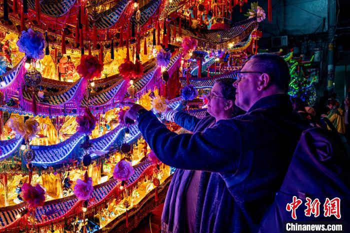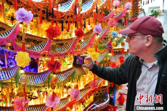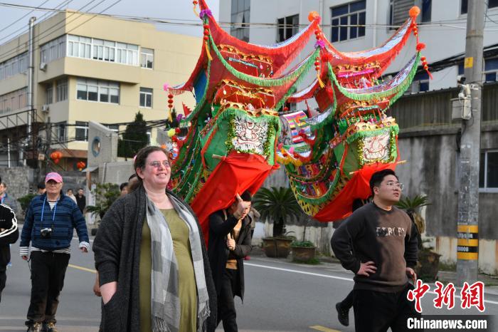 近日,30余位来自多个国家和地区的国际友人在有“中国民间艺术之乡”美誉的浙江温州乐清市,参观中国国家级非物质文化遗产——乐清首饰龙,感受当地年味儿。据悉,乐清首饰龙“集百工之成”,包含木工、钳工、油彩、纸扎等多门手艺。当地民众通过制作、游行乐清首饰龙,祈望新的一年风调雨顺、五谷丰登、国泰民安。图为国际友人参与乐清首饰龙游行。中新网