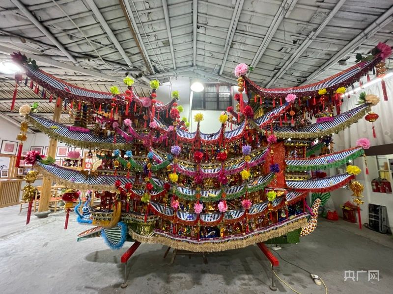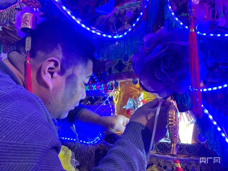 “首饰龙非常的精美,也有非常好的寓意和祝愿,各种人物和故事让我们感受到了中国文化的博大精深。”一位国际友人谈到。图为手艺人为首饰龙灯光做最后的调试。北京央广网