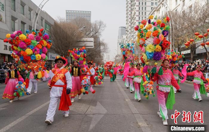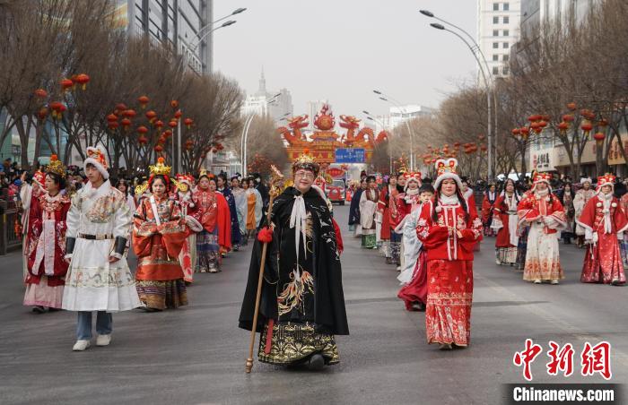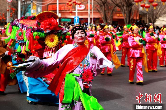 作为流传千年的民俗文化活动,社火植根于乡土文化与农耕文明,承载着希冀来年风调雨顺、五谷丰登的美好祈愿,讲究热热闹闹的节日氛围感和喧嚷流动的人气儿。图为西宁市优秀社火集中巡游活动沿街进行。中新网
