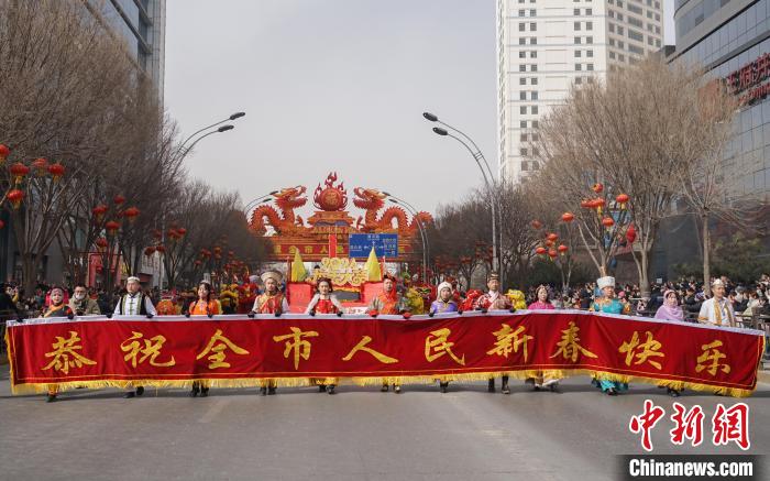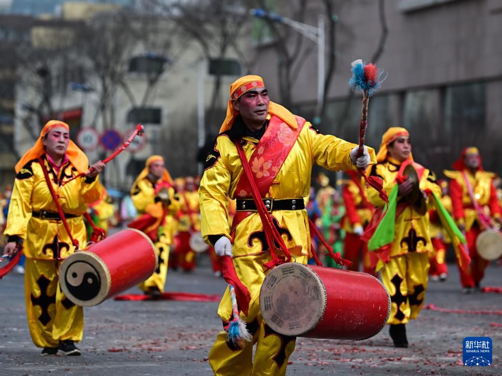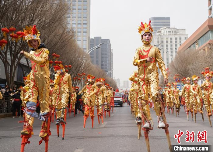 演员沿街表演社火。中新网