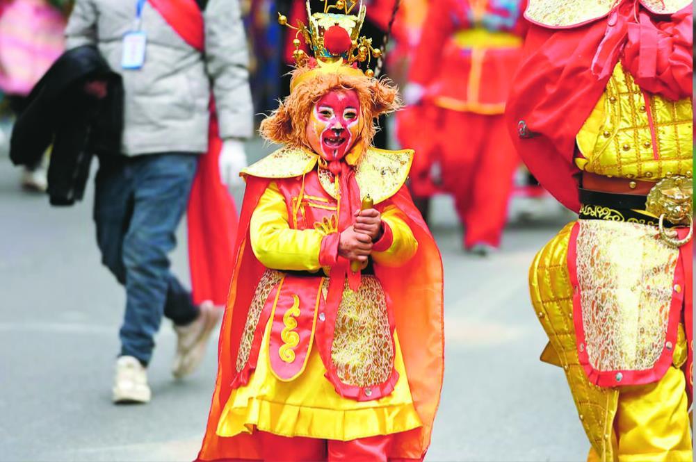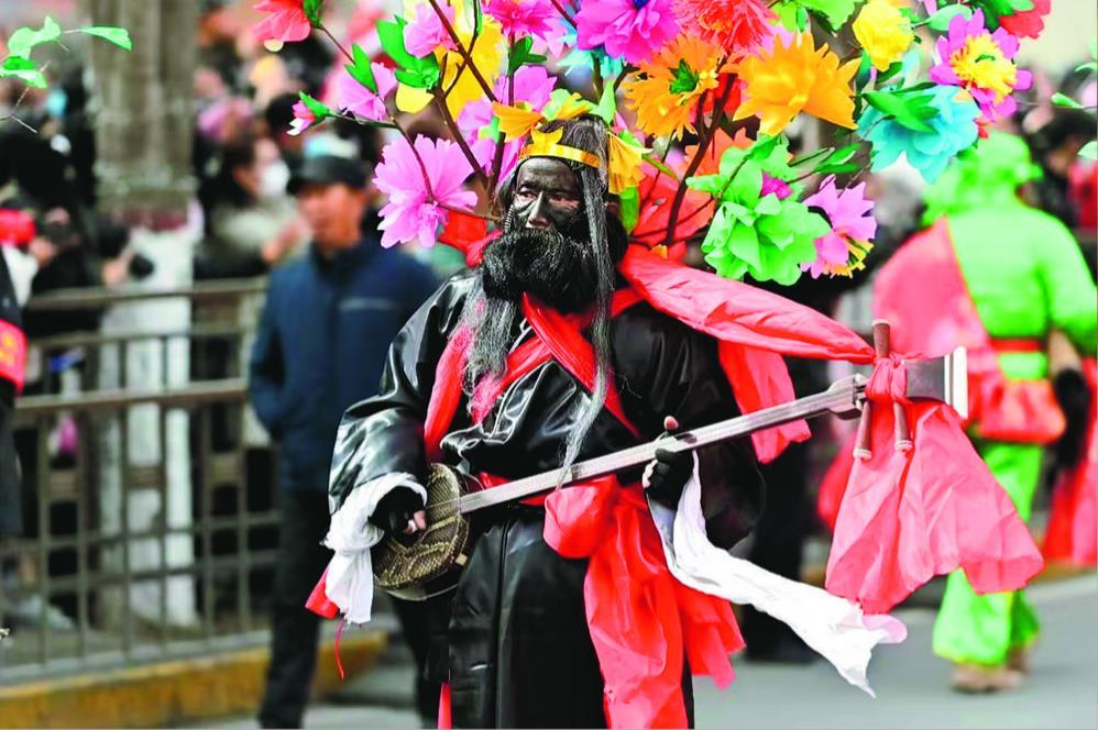 演员在社火巡游活动中表演。新华社
