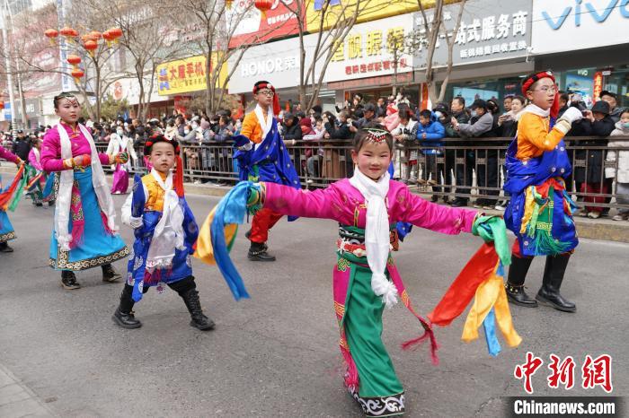 当日,“幸福西宁”“日月湟源”“魅力西区”“山水大通”“生态北区”“和谐东区”“遇见湟中”“文脉中区”八大板块23个表演方阵同场献艺,是西宁市内容最丰富、参与人数最多的一次社火巡演。舞龙、舞狮、民族舞、八仙、旱船、高跷、寸跷等年味十足的社火表演让现场观众欢呼不断。图为演员在社火巡游活动中表演。新华社