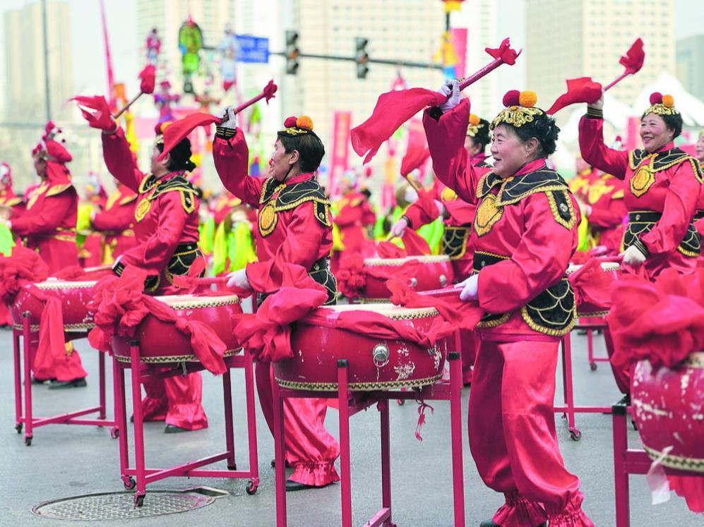 社火表演锣鼓喧天。《青海日报》